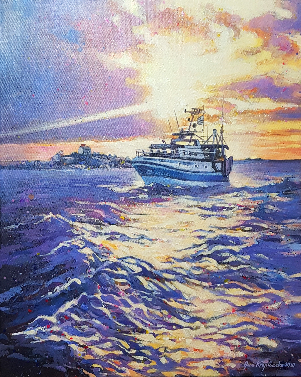 I made this painting in 2020. It depicts a fishing boat fishing near Ile Harbor in Brittany (Saint Quay Portrieux). Cape Horn was painted at sunrise. It's a challenge for a painter...the range of colors is unusual...I love this type of challenge.